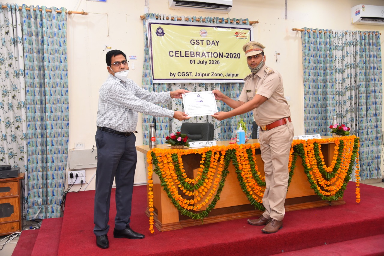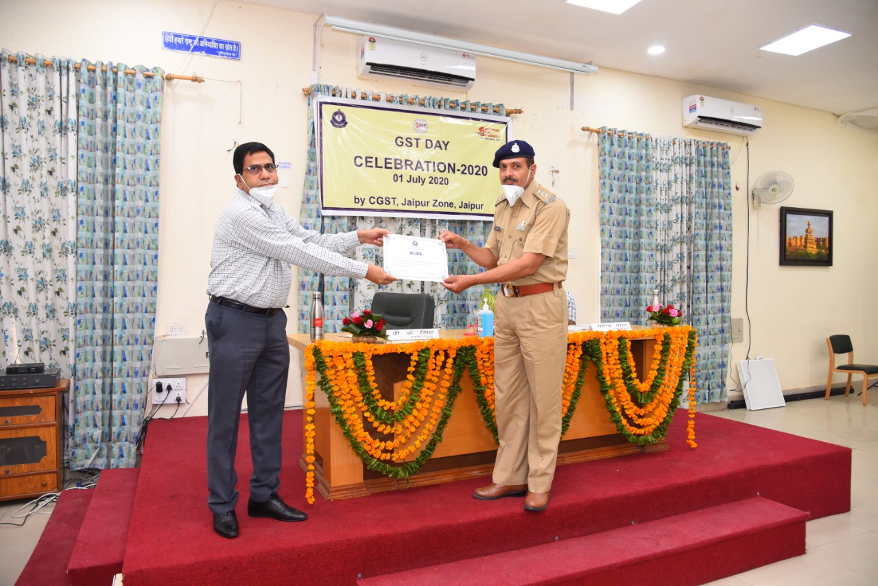 Chief Commissioner, CGST & CX Jaipur Zone awarding commendation certificates to the officers at the occasion of GST Day 2020 for exemplary work on 01.07.2020